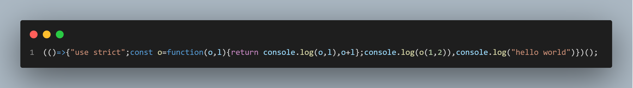 console.log(o(1, 2)), console.log('hello world')